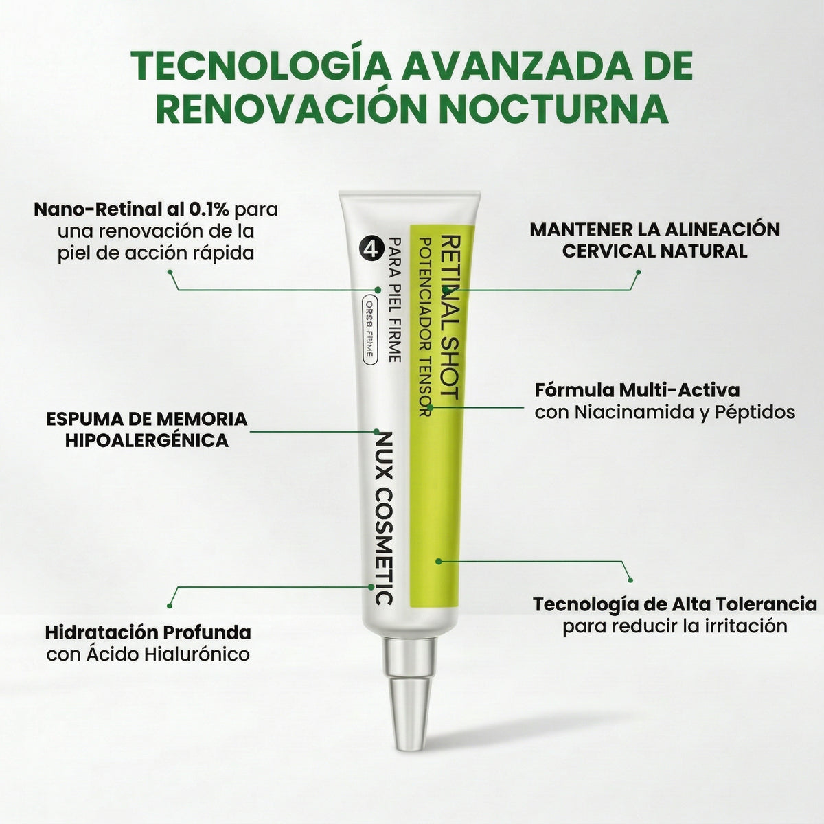 ¿Lista para transformar tu piel? Retinal Shot Premium es tu nuevo secreto nocturno. Con Nano-Retinal al 0,1%, actúa más rápido que el retinol tradicional, estimulando el colágeno y la elastina mientras duermes. Además, la Niacinamida ilumina, los péptidos reafirman y el Ácido Hialurónico mantiene tu piel hidratada y jugosa. Mínima irritación, máximos resultados.